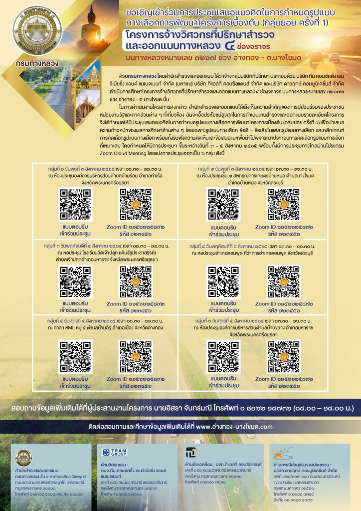 ขอเชิญเข้าร่วมการประชุมกลุ่มย่อย ครั้งที่ 1ประกาศกรมทางหลวง